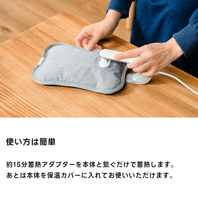 繰り返し使えて熱くなり過ぎず冷めにくい、エコで省エネな蓄熱式湯たんぽです。