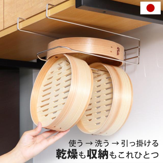 せいろ掛け 吊戸棚下収納 せいろも干せる 吊り戸棚用 引っ掛けラック ( せいろ収納 せいろ用フック 吊戸棚下 せいろ乾燥フック ステンレス 日本製 せいろ 保管 乾燥 収納 棚下収納 ペーパーホルダー 燕三条 )