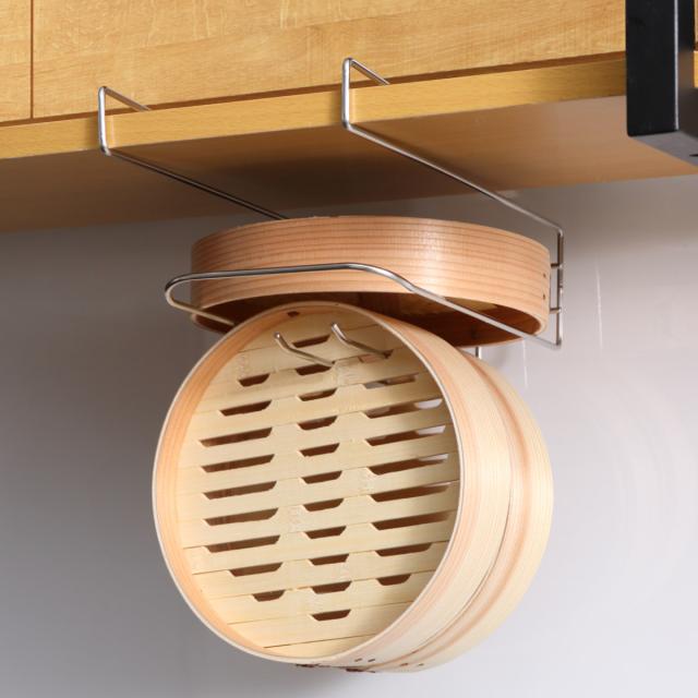 しっかり乾かさないとカビや黒ずみの原因になってしまうせいろをスッキリ乾かせる吊戸棚ラックです。使用後のせいろをそのまま掛けて干しながら保管ができるので、収納場所に困らずキッチン周りを整えることができます。