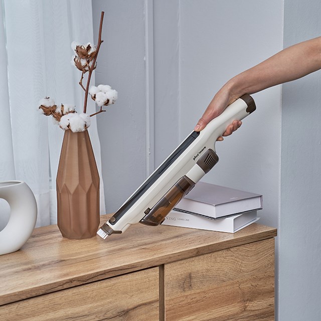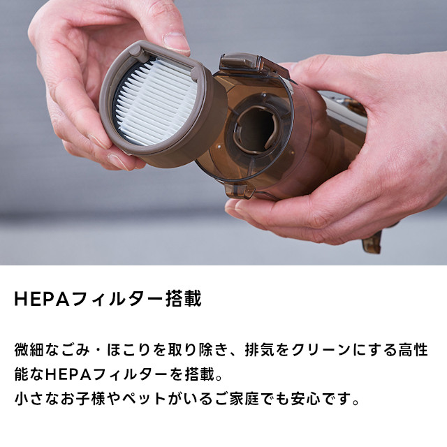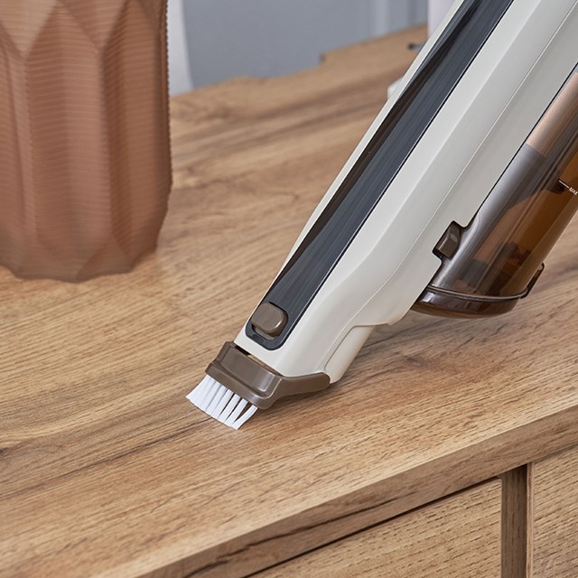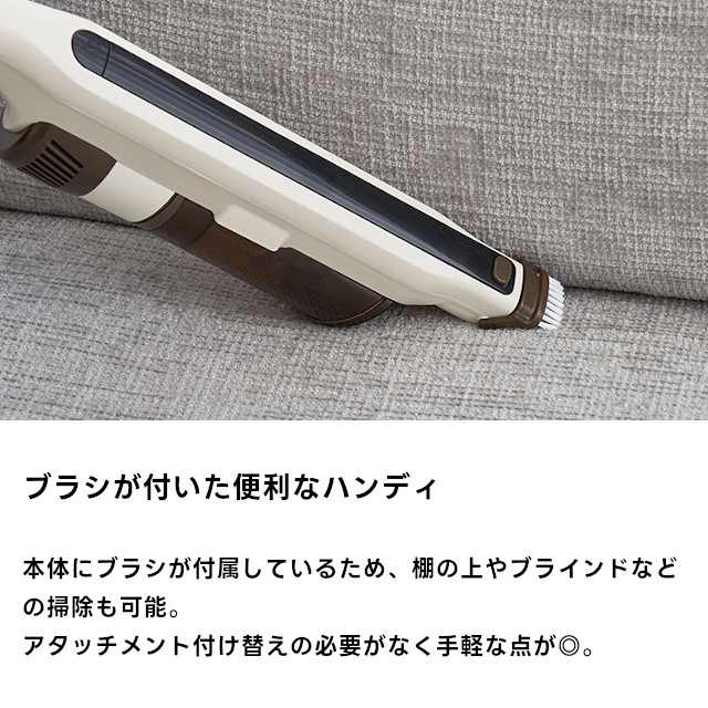 本体にブラシが付属しているため、ハンディとしても活用でき、軽量のため高い場所への掃除も楽々。