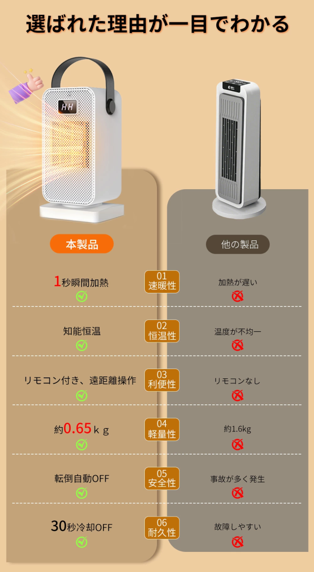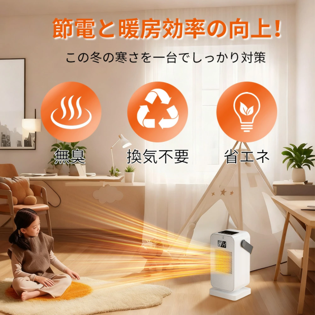 【安全機能付き&PSE認証済】転倒保護、過熱保護:使用環境の変化または不正使用のためヒーター内部が過熱や転倒になる場合、電源が切れます。PSE認証済で、家でもオフィスでも安心してご利用いただけます。