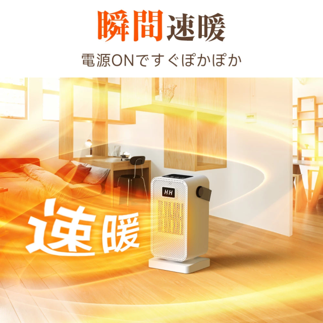 【瞬間速熱】この冬、在宅時間を快適に過ごす!スイッチを入れればすぐに温風が出るため、立ち上がりを待たずに暖まることができます。テーブルやデスクの上に乗せて指先の冷えやかじかみに温かい風を。冷えを感じやすい足元に設置するとより温かさを実感できます。