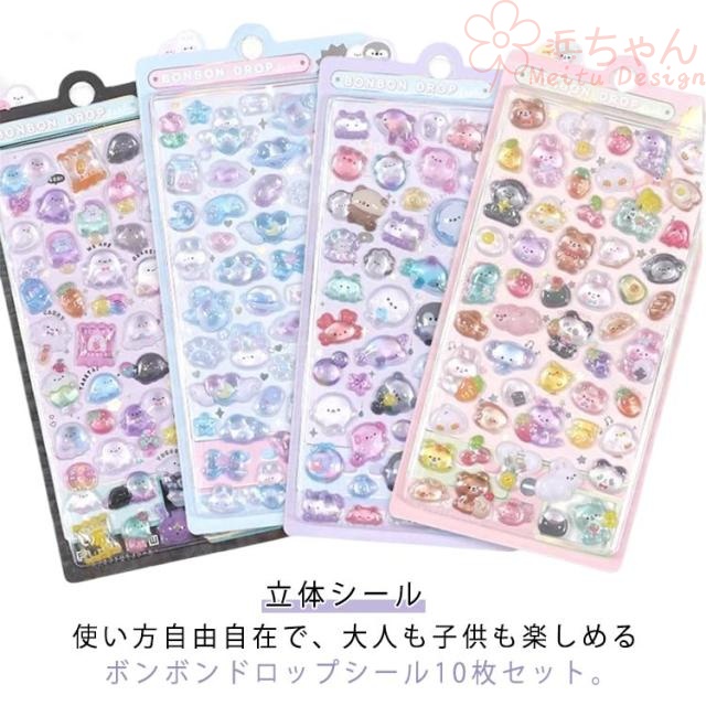 10枚セット ボンボンドロップシール ご褒美シール 可愛い 3D立体 装飾用 スマホケース DIY用 手作り 手帳 ステッカー アルバム 子供用 デコシール 幼児用 3Dシール 日記帳用 キャラクター 手芸用 送料無料