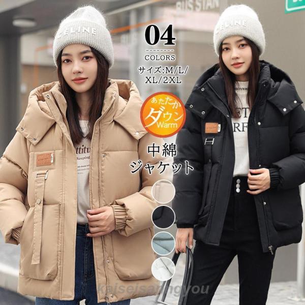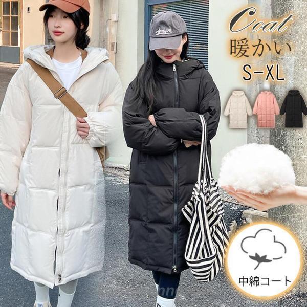 ダウンコート レディース ダウンジャケット 中綿ジャケット ロング フード付き 防寒着 中綿コート 大きいサイズ ゆったり アウター 冬 暖かい シンプル