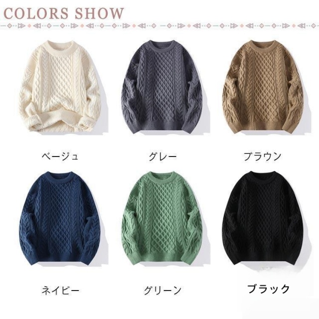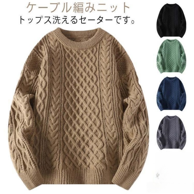 ケーブル ニット セーター メンズ クルーネック 秋服 冬服 薄手 ビジネス シンプル おしゃれ カジュアル 春 秋送料無料