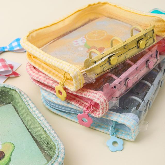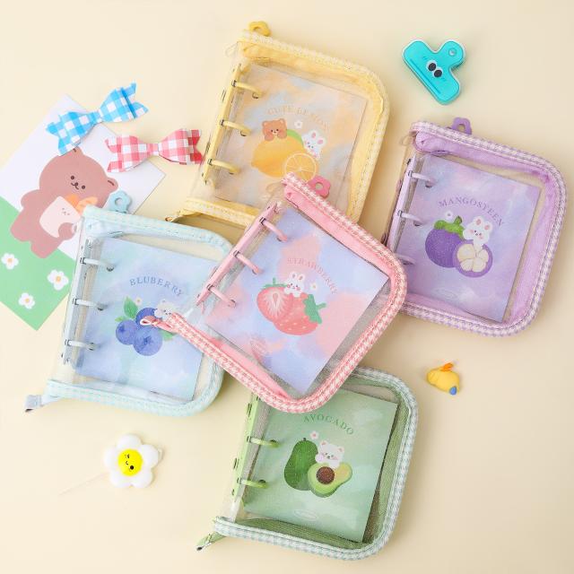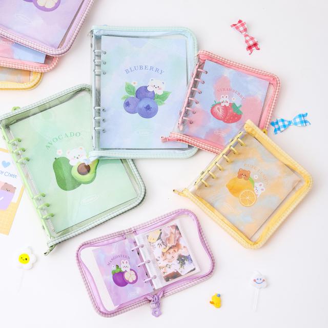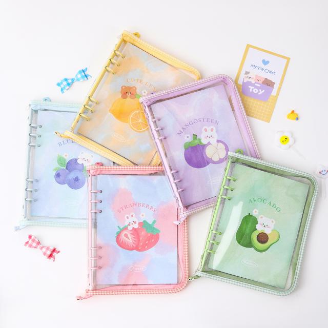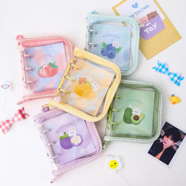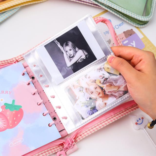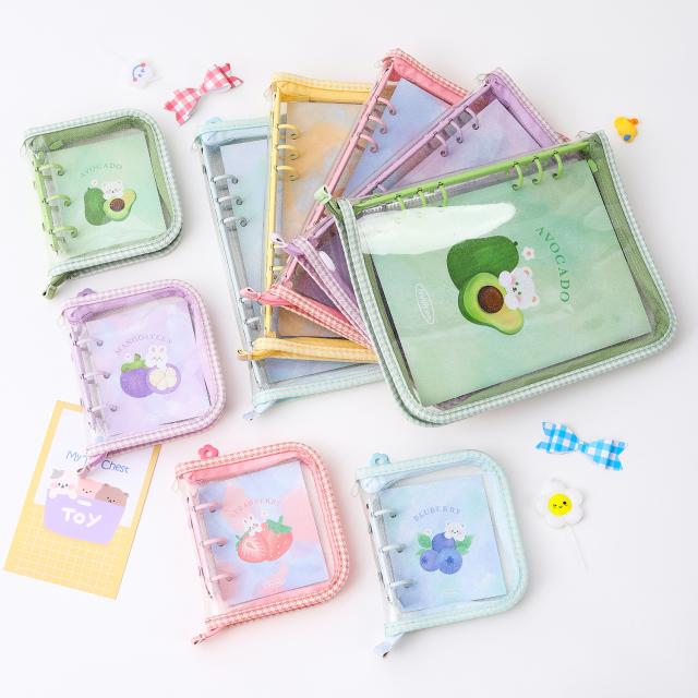 韓国風 透明 PVC A5 バインダー 手帳 ジッパー付き 多機能 4ポケット カードケース フォトカード アルバム 可愛い INS風
