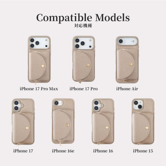 iPhone17 ケース ショルダー 背面ポケット ミラー付き iPhone16 iPhone16e iPhone17Pro iPhone Air iPhone16Pro iPhone17ProMax ケース ショルダーストラップ iPhone15 アイフォンケース スマホケース カード収納 ファスナー付き