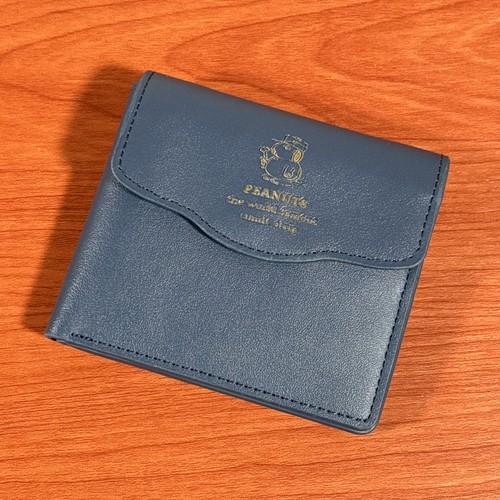 送料無料 ピーナッツ/スヌーピー 折りたたみ二つ折り財布 ワンポイントエンボスシリーズ SPC-1370 / ネイビー オラフ 型押し