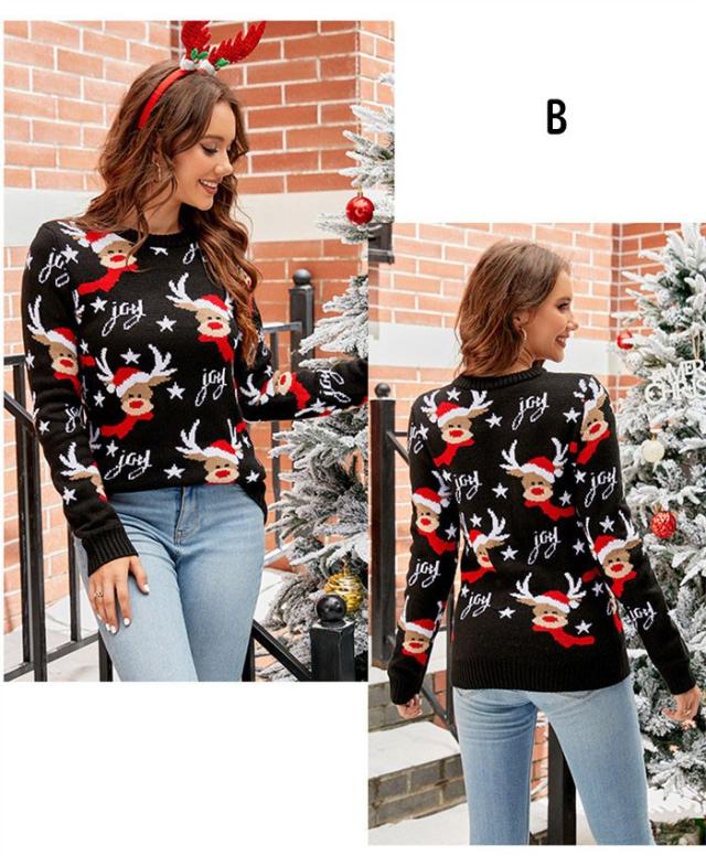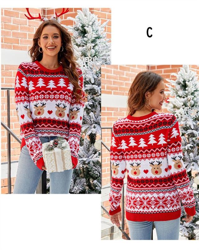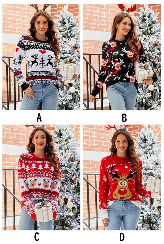 クリスマス セーター レディース トナカイ柄 ニット 赤 冬 秋冬 ニットセーター かわいい ゆったり 大きめサイズ 長袖 クルーネック おしゃれ カジュアル 韓国風 暖かい ニットプルオーバー クリスマスコーデ プレゼント S M L 2L 3L