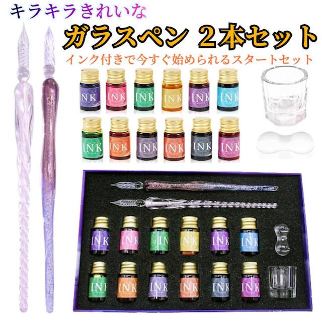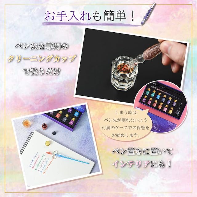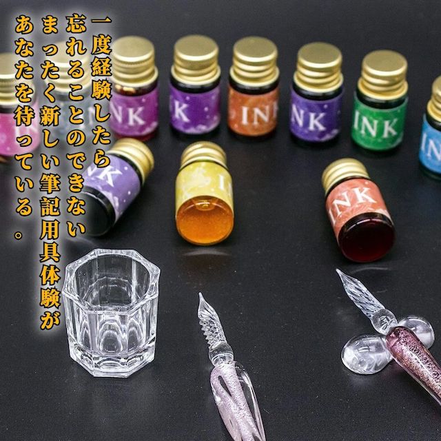 ガラスペン インク セット 【ハレゾラTBP公式店】 ガラスペン 初心者 セット 豪華 インク12色 ペン2本 ペン置き クリーニングカップ おしゃれ 星空 万年筆 署名 書道 手紙 ギフト プレゼント