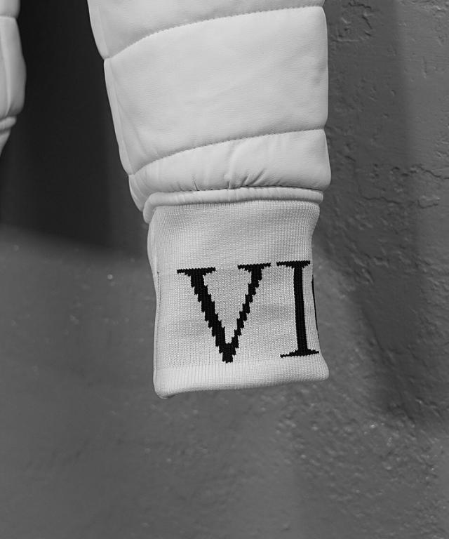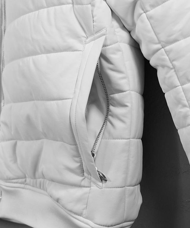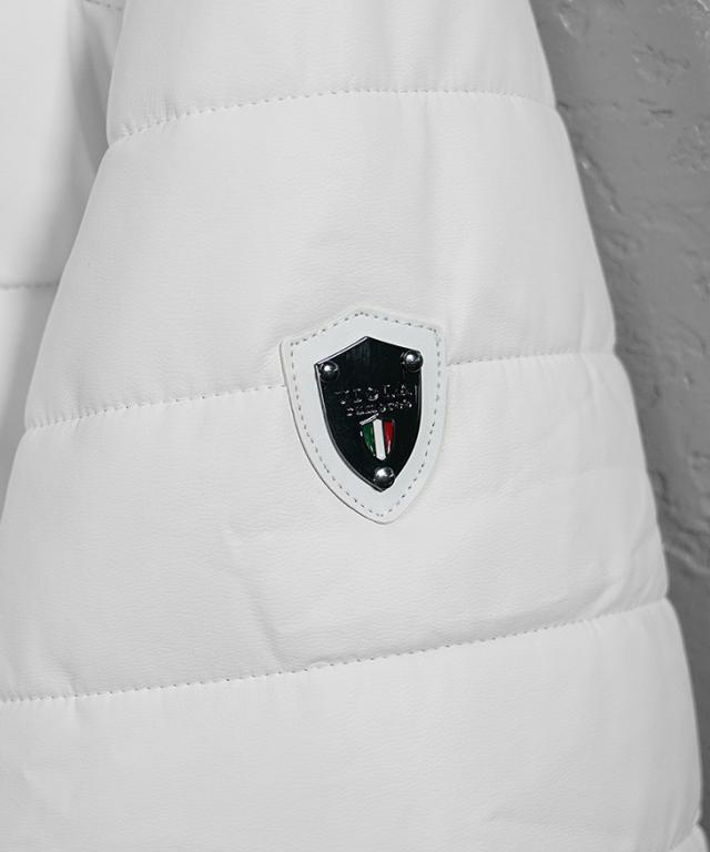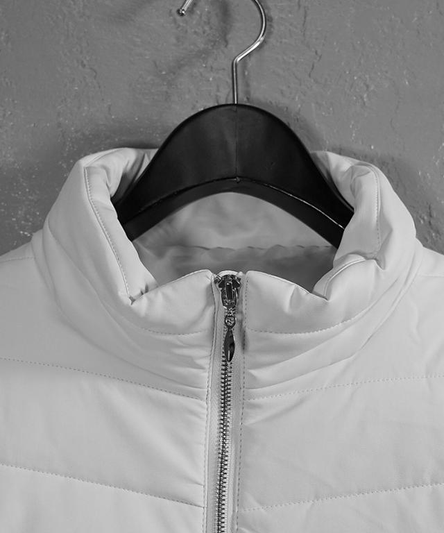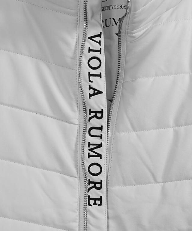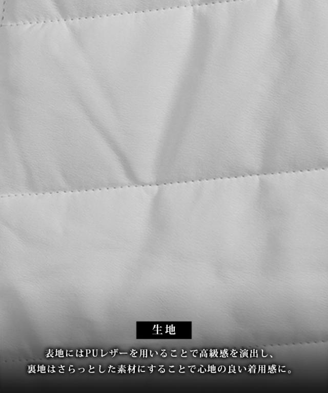 VIOLA rumore(ヴィオラ) 『PU薄中綿ジャケット』【PU薄中綿ジャケット】シンプルな中にも細かなこだわりが光るアイテム。PUレザー素材との相性が抜群なホワイトとブラックの2色展開なのでどちらも落ち着いた印象を与える一着。PUレザー素材を使用し、軽量で動きやすく、着心地も快適。左肩のロゴエンブレムと袖リブに施されたブランドロゴが、シンプルながらブランドらしさを引き立てます。裾リブがしっかりと体にフィットし、冷気をシャットアウト。両サイドにあるジップポケットは使いやすさをプラスする。一枚で決まる、「男らしさ」を身にまといこれからの季節を遊びつくせ。