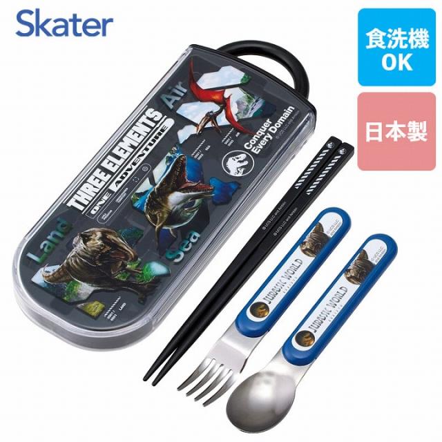 メール便送料無料 スケーター 食洗器対応スライド式トリオ ジュラシックワールド リバース TACC2 開けやすいスライド式 箸スプーンフォークのセット プレゼント