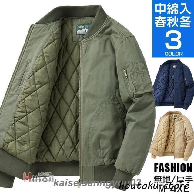 MA-1 メンズ 大きいサイズ ミリタリー フライト アウター 綿100% 軍モノ 中綿 防寒 作業着 ジャンパー 中綿入り コート MA1 防風 厚手 春 秋冬 アメカジ メンズファッション オリーブ ベージュ ダークブルー