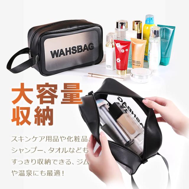 お風呂ポーチ 半透明なPVC素材 コスメポーチ スパバッグ 持ち手付き 大容量 防水 旅行 トラベルポーチ 温泉バッグ 銭湯 ジム CFP2616