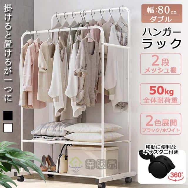 ハンガーラック 頑丈 おしゃれ 2段 ダブルハンガーラック キャスター付き 可動棚 室内物干しスタンド 洗濯物干しハンガー 洋服ラック 洋服