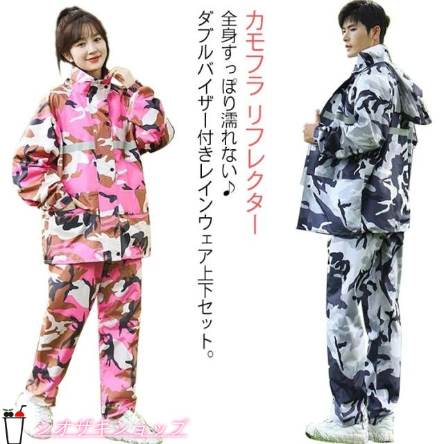 カッパ レインスーツ 上下セット 作業着 迷彩 メンズ 完全防水 ジュニア おしゃれ レディース バイク 自転車 通学 通勤 登山 アウトドア フード付き レインコート