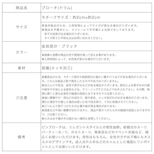 ピンブローチ ブローチ 楽器 音楽 ドラム ピンブローチ メンズ レディース タックピン ラペルピン バッジ ドラマー 音楽会 発表会 入学式 卒業式 卒園式 結婚式 ゲスト 成人式 おしゃれ アクセサリー 子供 キッズ 大人 ギフト プレゼント