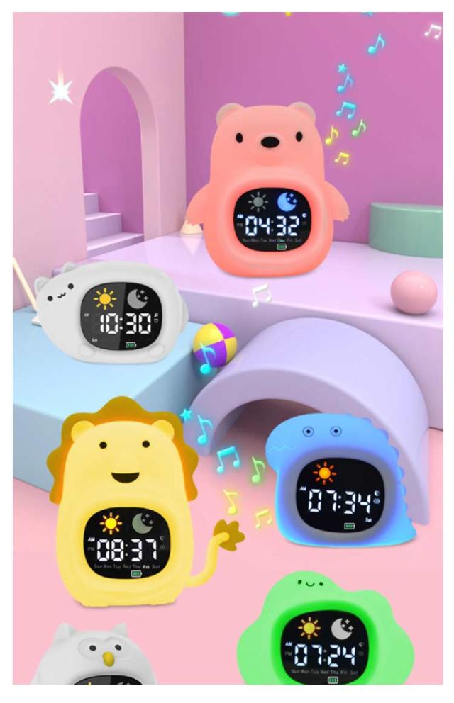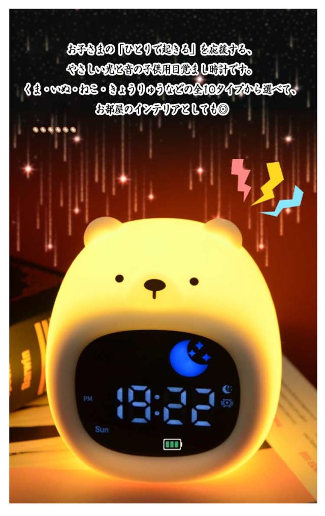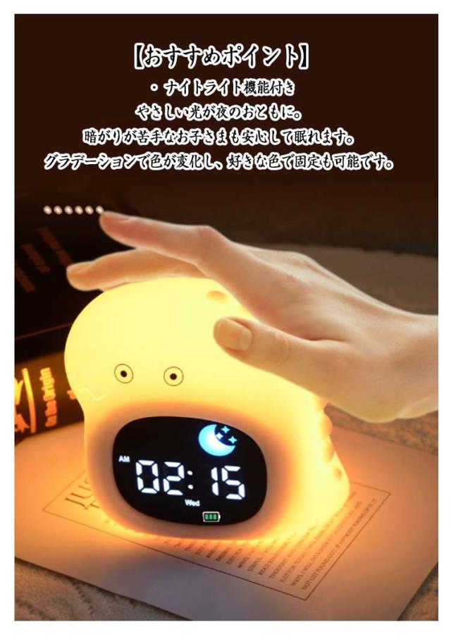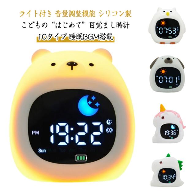 子供 置き時計 女の子 スヌーズ おしゃれ シリコン製 キャラクター 目覚まし時計 時計 男の子 充電式 大音量 かわいい キッズ アラームクロック 睡眠BGM搭載 子供用 部屋 ライト付き ナイトライト ベビークロック ギフト かわいい