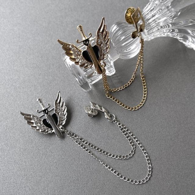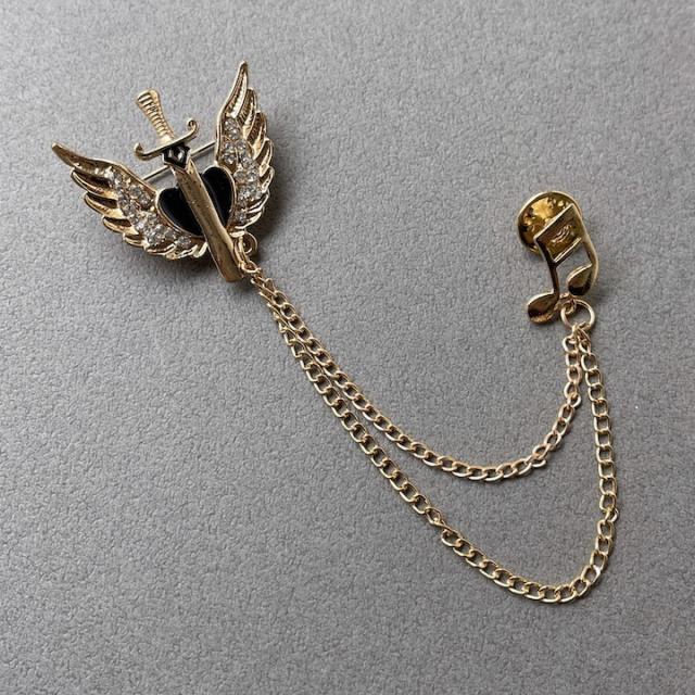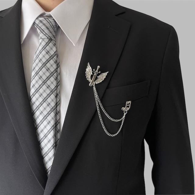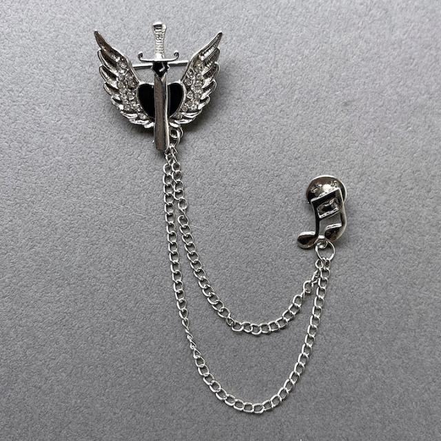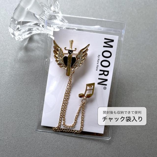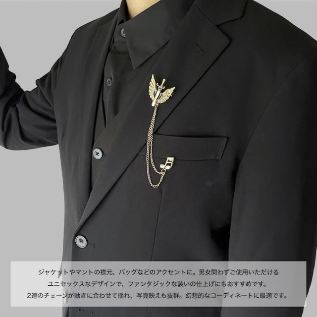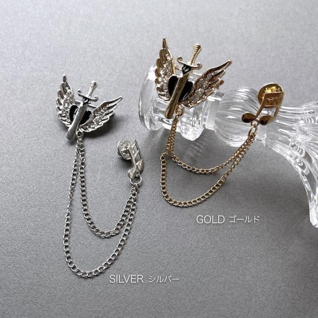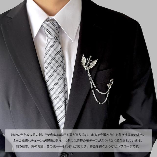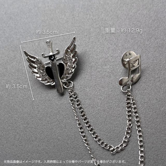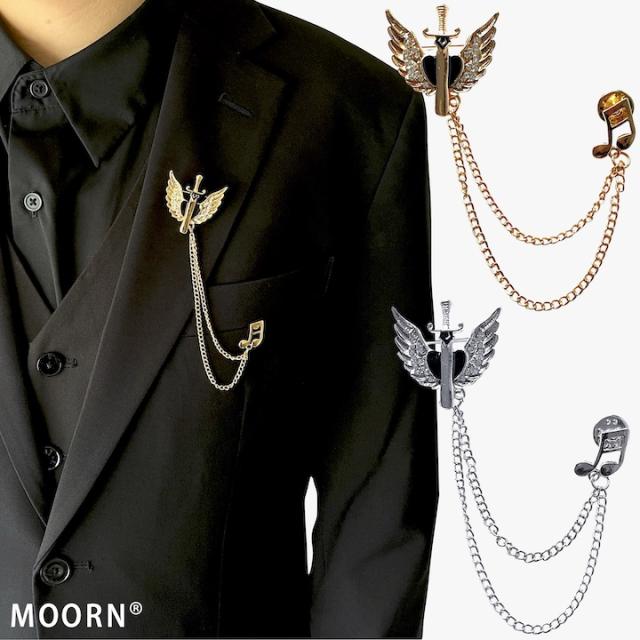 メンズ ピンブローチ 剣モチーフ 翼 音符 タックピン チェーン ブローチ ストーン ラペルピン 結婚式 ゲスト 普段使い 入学式 卒業式 成人式 お祝い ギフト おしゃれ シルバーアクセサリー クリスマス プレゼント 大人 チェーンブローチ【MOORN/モーン】