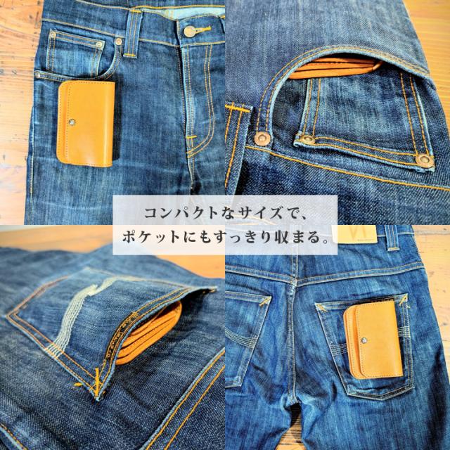 上質な日本製「栃木レザー・ジーンズ」を使用した、コンパクトトラッカーウォレット。
