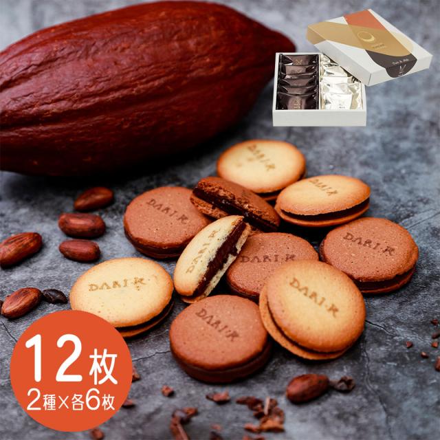 京都発「dari K」カカオサンドクッキー2種セット。インドネシア産カカオの香り高いダーク&ミルク各6枚入り。上品な甘さでギフトにも最適。