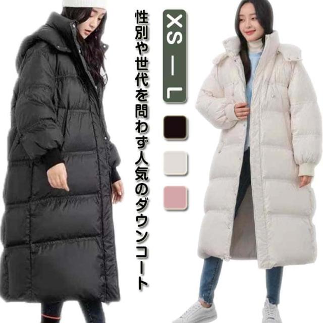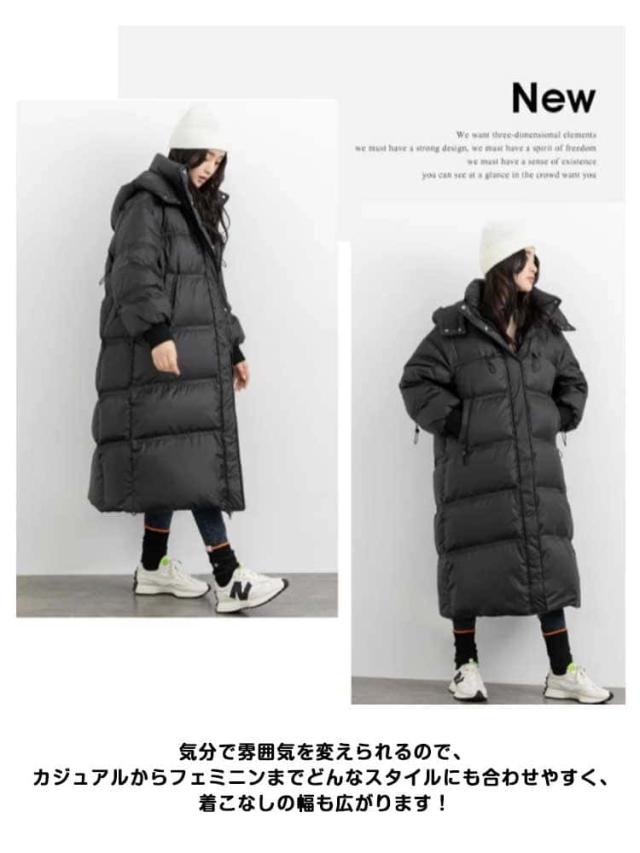 ダウンコート ロング レディース 冬 コート ロングダウン フード付き きれいめ ダウンジャケット ベンチコート Aライン 軽量 厚手 防寒 暖かい 冬 アウター 30代 40代 50代 通学 通勤 カジュアル ブラック 黒