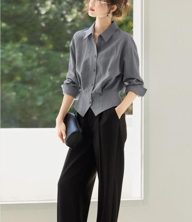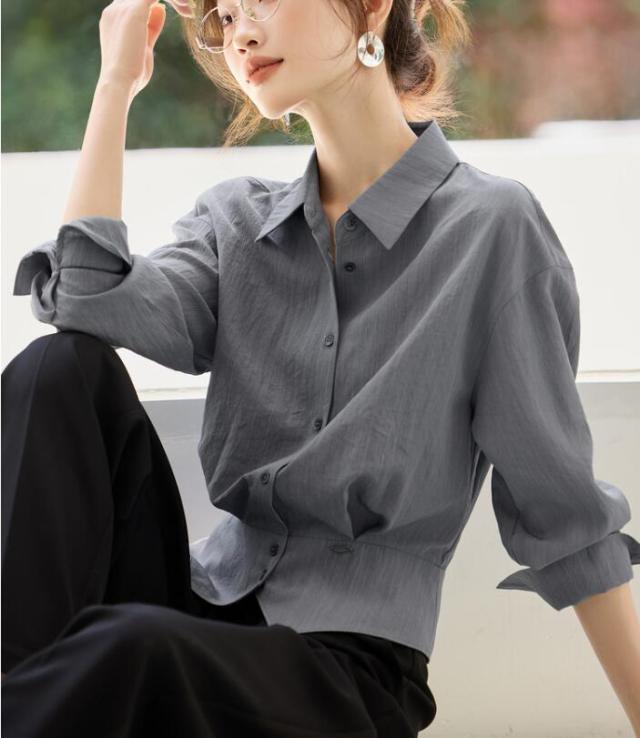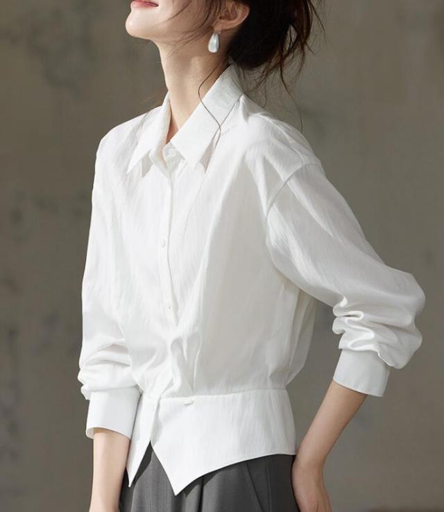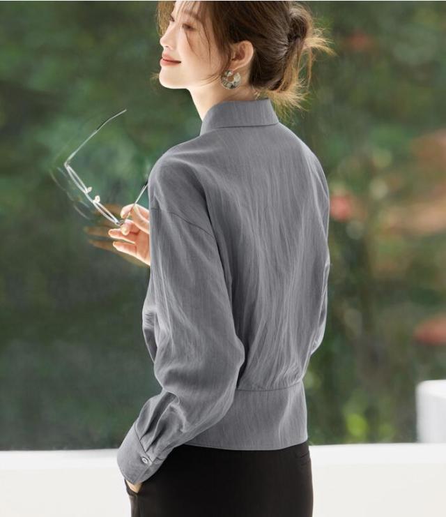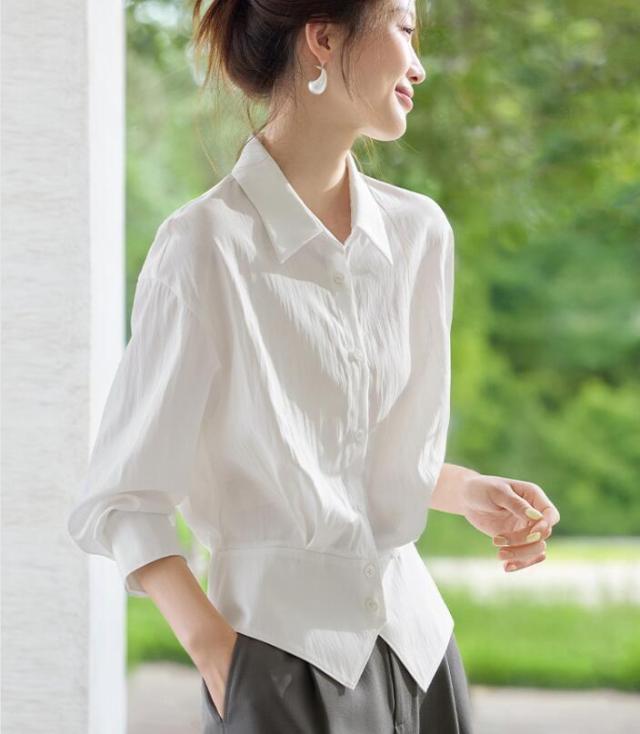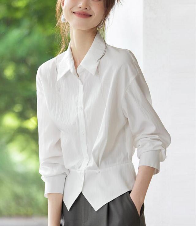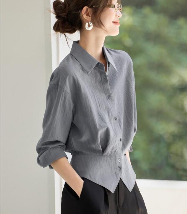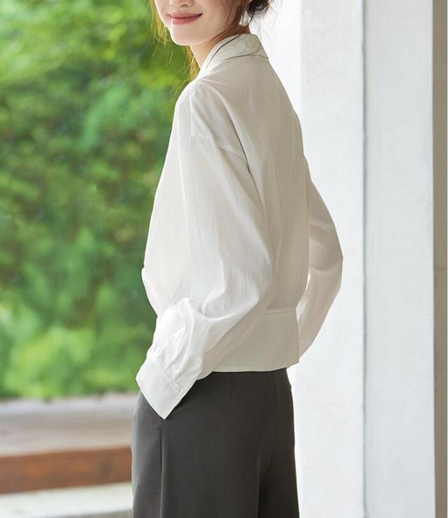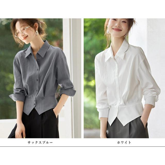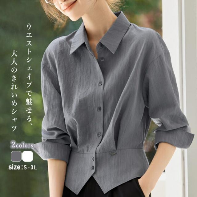 ブラウス シャツ レディース トップス ワイシャツ 長袖 レギュラーカラー ベーシック 無地 前開き ボタン付き 襟付き 透け 通勤 オフィス きれいめ フォーマル 大きサイズ 春 秋 冬 S M L 2L 3L