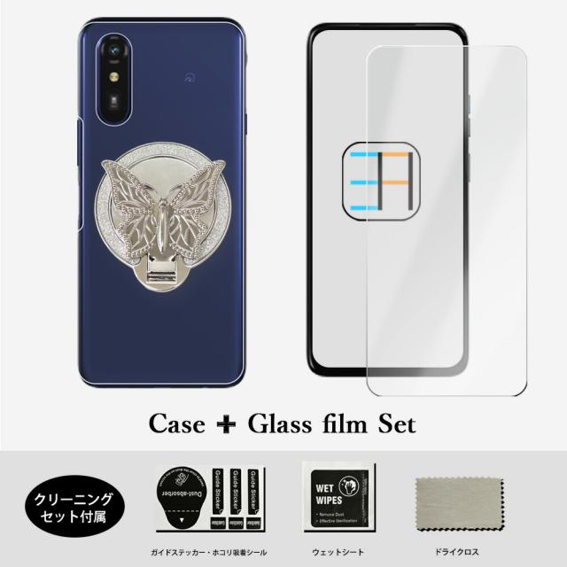 【ガラスフィルム付き 】 AQUOS ZERO2 ハードケース 蝶 バタフライ リングスタンド 120°折畳スタンド おしゃれ 薄型リング AQUOSzero2 SH01M SH-01M SHV47 SH-M13 アクオス ゼロ2 女の子 薄型 ワイヤレス充電 携帯カバー