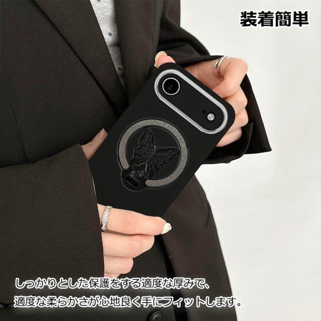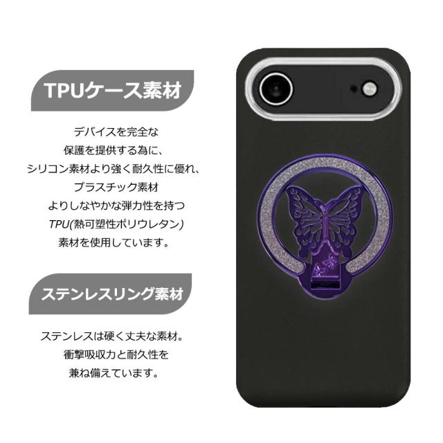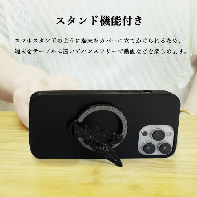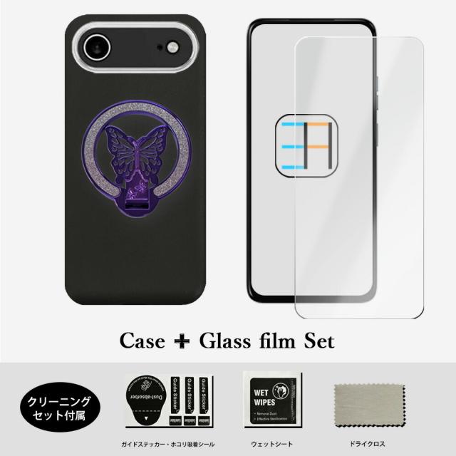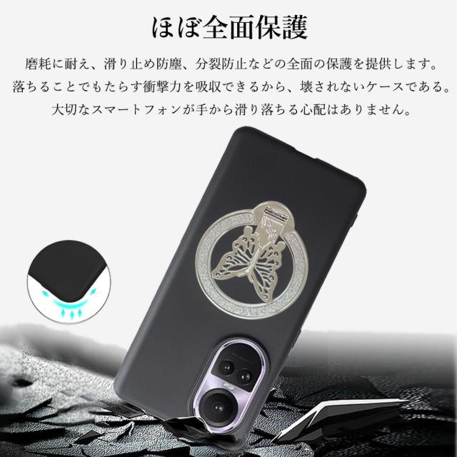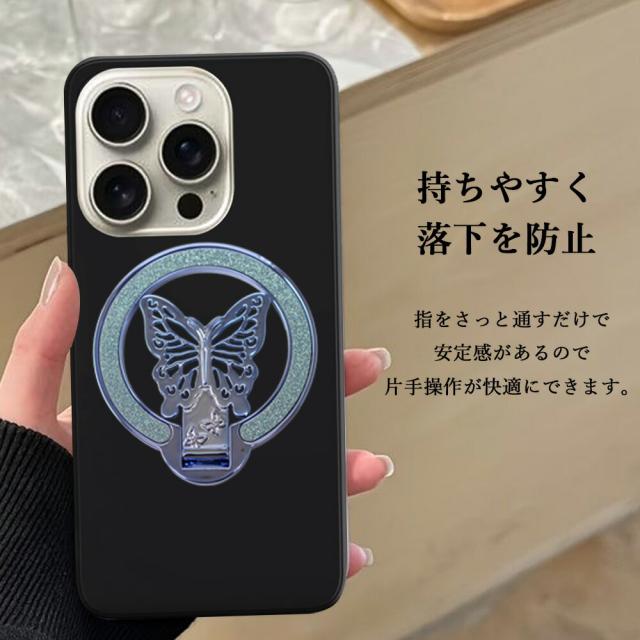 【ブルーライトカットガラスフィルム付き 】 ROG Phone 9 ケース 黒 ソフトケース 蝶 バタフライ リングスタンド キラキラ リングホルダーROG Phone 9 ワイヤレス充電 携帯カバー