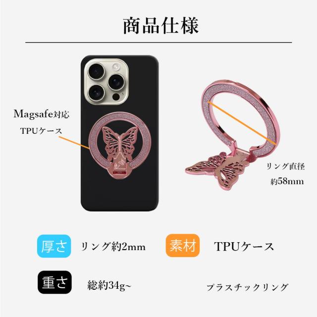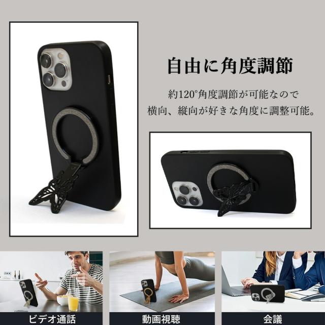 3911 【120°折畳スタンド】MagSafe対応 全機種対応 薄型 リング ワイアレス充電 おしゃれ 可愛い 韓国風 デザイン