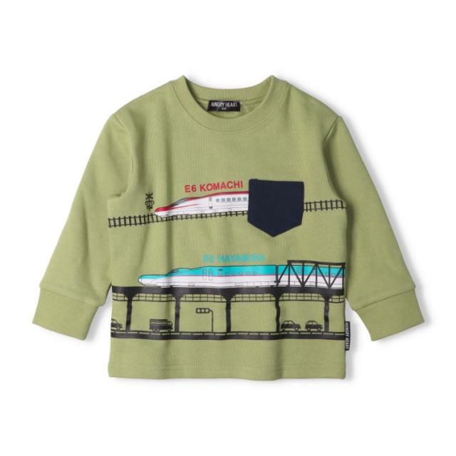 ハングリーハート(Hungry Heart)/新幹線電車風景プリント裏毛トレーナー