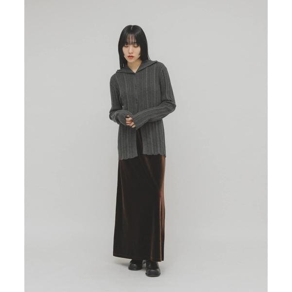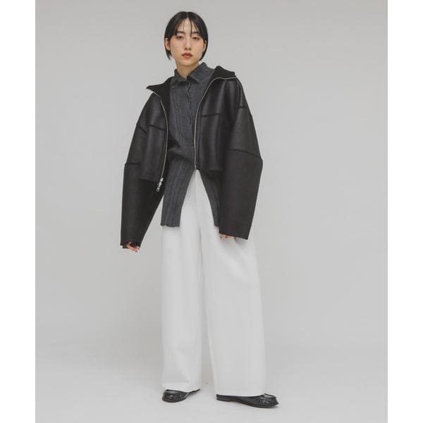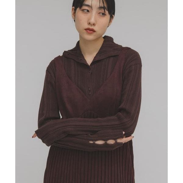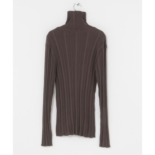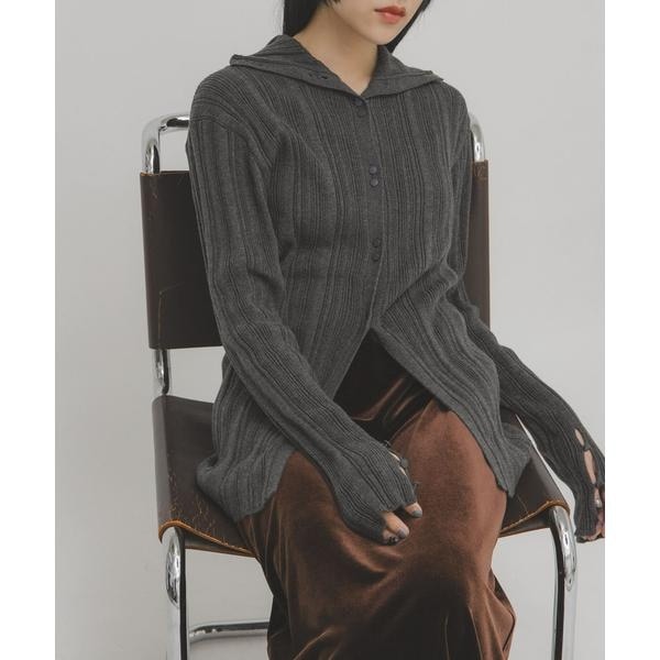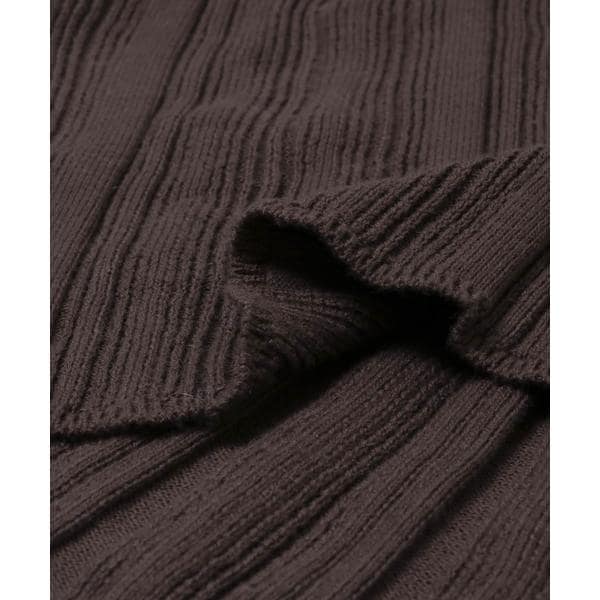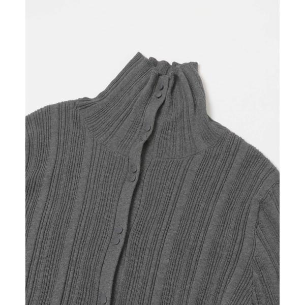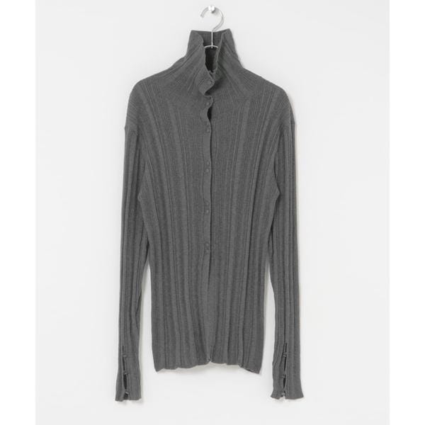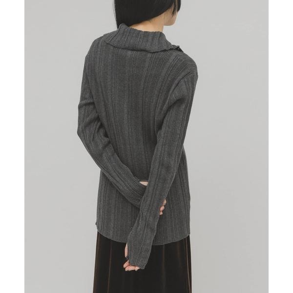 すっきりとした着こなしとフィット感のあるランダムリブを使用したニット。フロントの釦が特徴的で、裾のスリットは抜け感をプラスします。ハイネック仕様ながらも、釦を外すと表情が変わるのもポイント。ベーシックに見えながらも一癖のあるデザインが存在感を放つ1着に仕上げました。