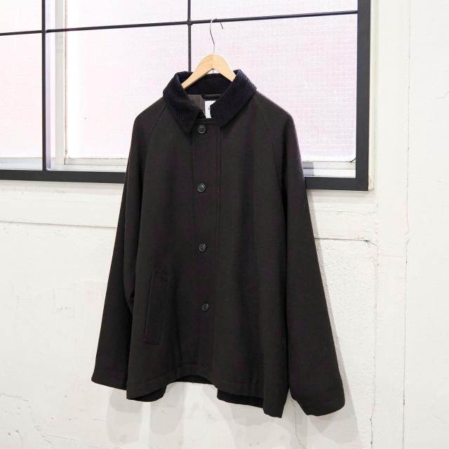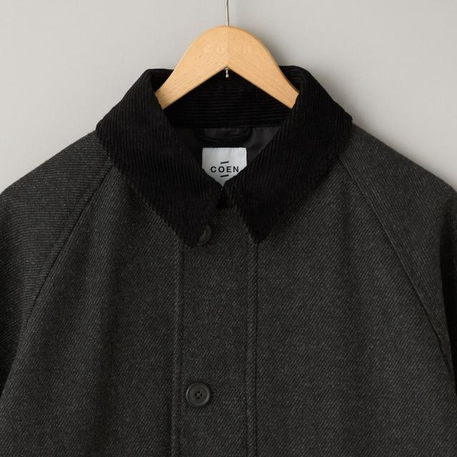 素材には温かみのあるウールブレンドのツイル生地を使用し、衿のコーデュロイも柔らかな風合いのものを選定しました。