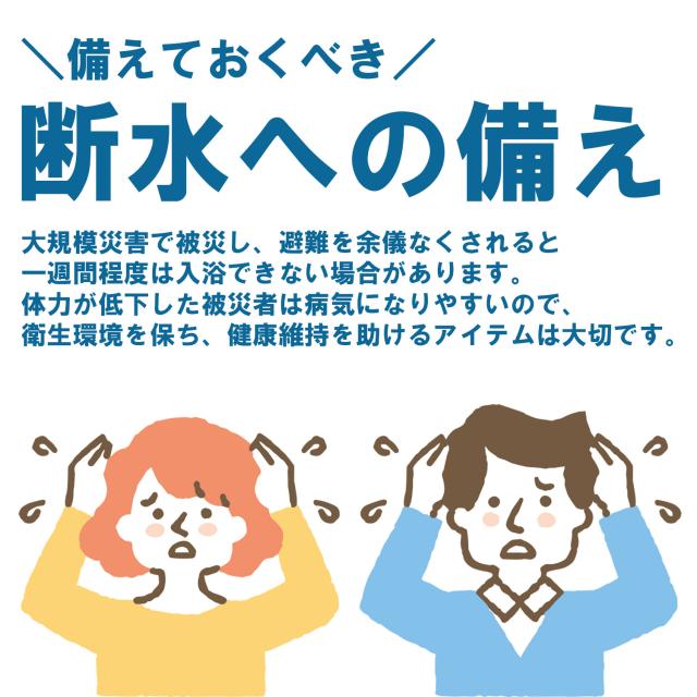 大規模災害で被災し、避難を余儀なくされると一週間程度は入浴できない場合があります。