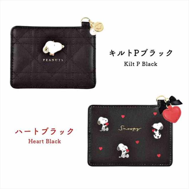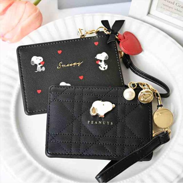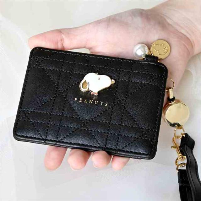 シックなブラックにスヌーピーのデザインが、大人かわいいリール付きパスケース。伸びるリール付きで改札でもスムーズにタッチが可能です。
