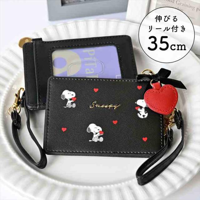 パスケース 定期入れ スヌーピー SNOOPY リール付き レディース 大人 女子 高校生 中学生 小学生 女の子 おしゃれ かわいい ICカードケース PEANUTS 定期券入れ ストラップ コンパクト キャラクター グッズ シンプル 学生 社会人 通勤 通学 プレゼント ギフト ブラック 黒