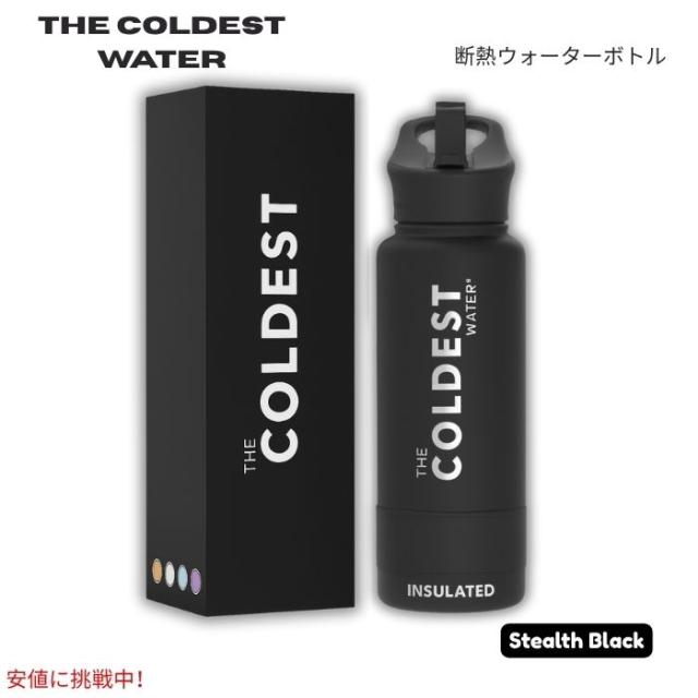The Coldest Water 真空断熱ウォーターボトル ストロー付きキャップ 保冷保温 ステンレス製 ステルスブラック 40oz (1.18L) Insulated Bottle w/ Straw Lid