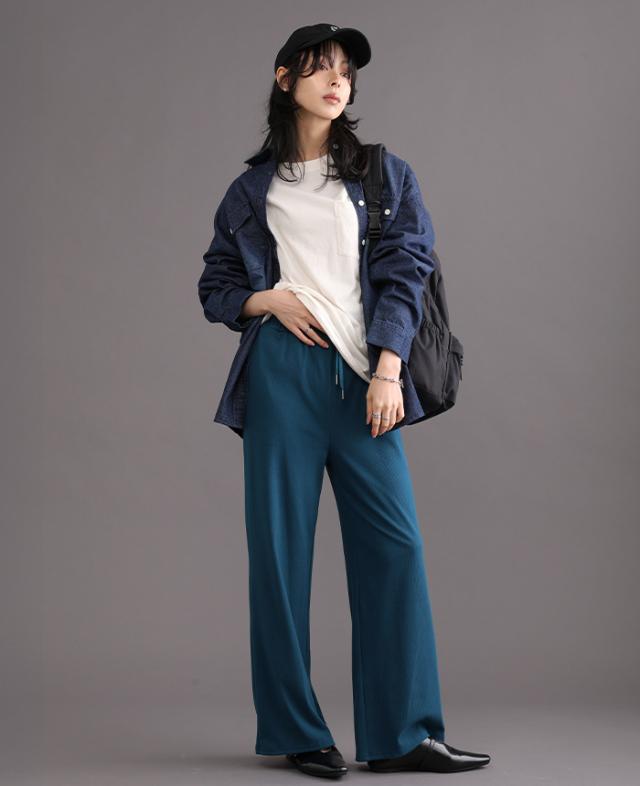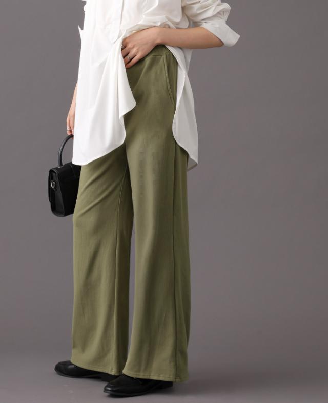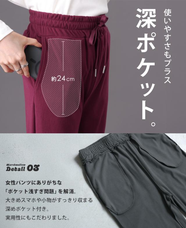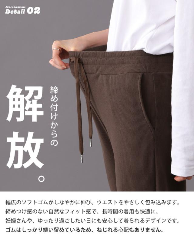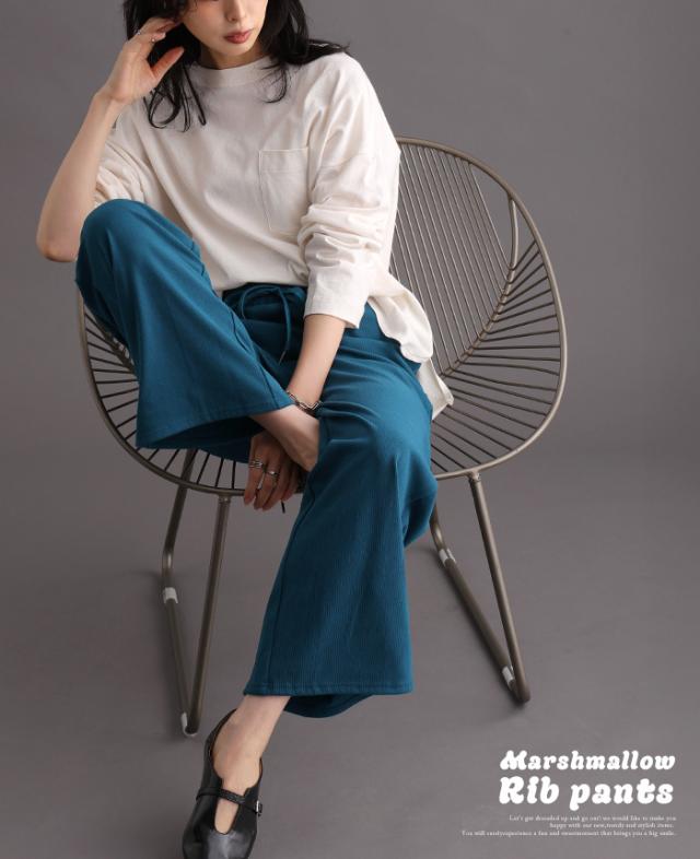 [新作限定P10%×送料無料]マシュマロリブパンツ レディース パンツ ボトムス ストレートパンツ イージーパンツ リブ【メール便不可】