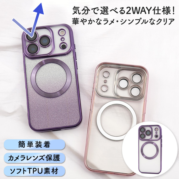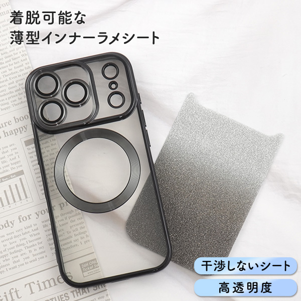 スマホケース iPhone17Pro MagSafe対応 インナーシート付ラメケース クリアソフトケース アイフォン17プロ 背面 保護 カバー 透明 クリア 光沢 無地 TPU 柔らかい シンプル アイホン スマホカバー マグセーフ対応 新機種 iPhone 17Pro アイフォン17Pro