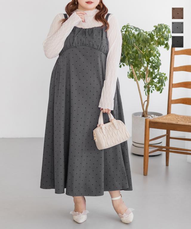 大きいサイズ/レディース/LL/3L/4L/CLETTEオリジナルフロッキードットジャンスカワンピース