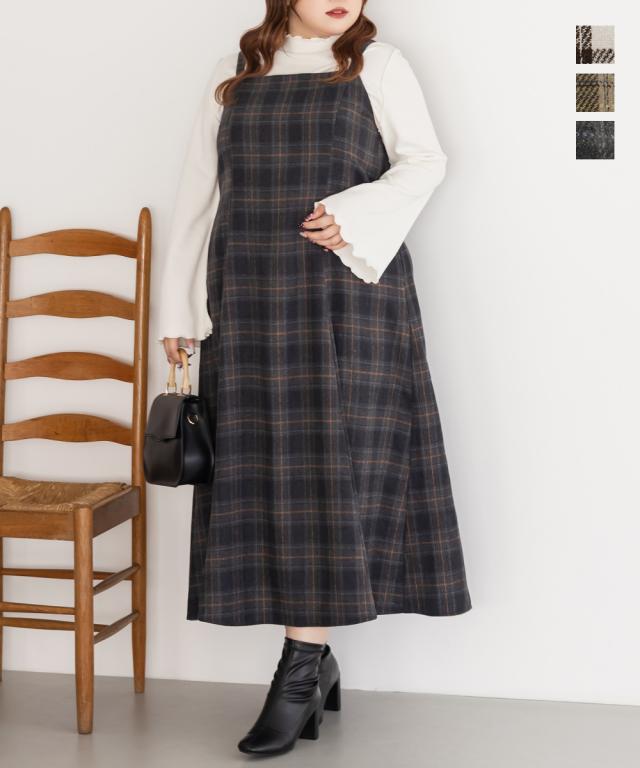 大きいサイズ/レディース/LL/3L/4L/CLETTEオリジナルフェイクウールチェック柄ジャンスカワンピース