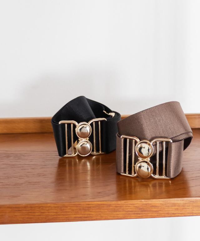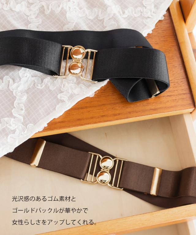 大きいサイズ/レディース/フリーサイズ/CLETTEオリジナルゴールドバックルサテンゴムベルト