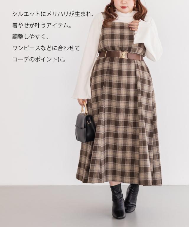 | フリーサイズを着用して、まだ長くできる余裕のあるサイズ感でした。長さは調節できるのと、本体はゴムのベルトなので伸縮性もあってストレスフリーな着用感でした。太めのベルトで付けるだけでウエストをキュッと引き締めた印象になります。今っぽいゴールドバックルで上品さもありきちんとしたシーンにもお勧めです!どんなアイテムにも合わせられるベルトはバリエーション違いで持っておきたいアイテムです♪ワンピースやスカートなどと相性良く付けられるデザインです。 |