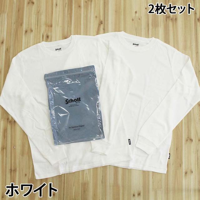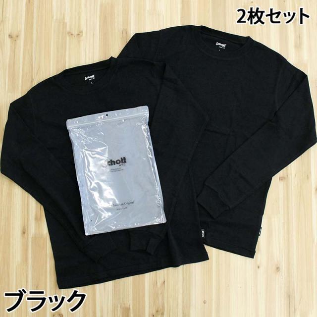 送料無料 Schott ショット 2PACK L/S T-SHIRT 782-5930010 2パック 2枚組 長袖Tシャツ クルーネック 無地 メンズ ロンT 綿 コットン 綿100% ブラック ホワイト トップス ブランド