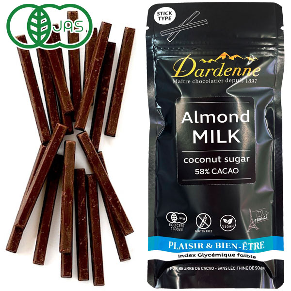 【11月新商品】【秋冬限定】ダーデン 有機ココシュガーチョコレート アーモンドミルクスティック カカオ58%(48g)【アルマテラ】