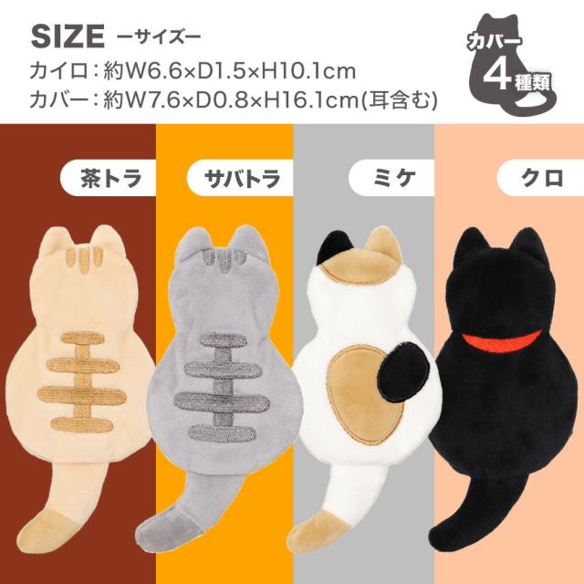 サイズ | カイロ:約 縦10.1×横6.6×厚み1.5cm カバー:約 縦16.1×横7.6×厚み0.8cm |