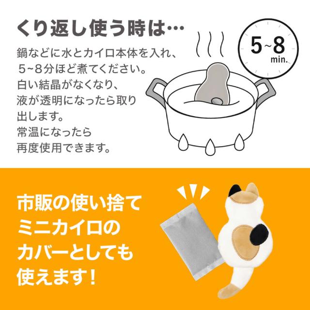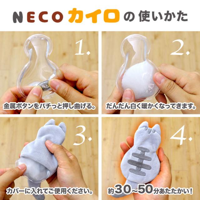 商品情報 | NECO ネコ カイロ 繰り返し使えてぽかぽかあたたかくなるねこ型カイロ。 <繰り返し使える!エコカイロ> 鍋などで5〜8分ほど煮て常温になったら再度使えるエコなカイロです。 ※使用期限/約2年(約6,000回) <金属ボタンを押し曲げるだけ> 金属ボタンをパチっと押し曲げるだけ!すぐにあたたかくなります。 <ミニカイロカバーとしても使える> 市販のミニカイロ(約9×5.5cm)カバーとしても使えます。 カバーはキュートな、ねこのデザイン! ねこの柄は4種類 お気に入りのねこちゃんを見つけてみてください。 <手のひらサイズでコンパクト!> コンパクトなので持ち運びにも便利! 冷える時のお供にオススメです。 |