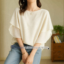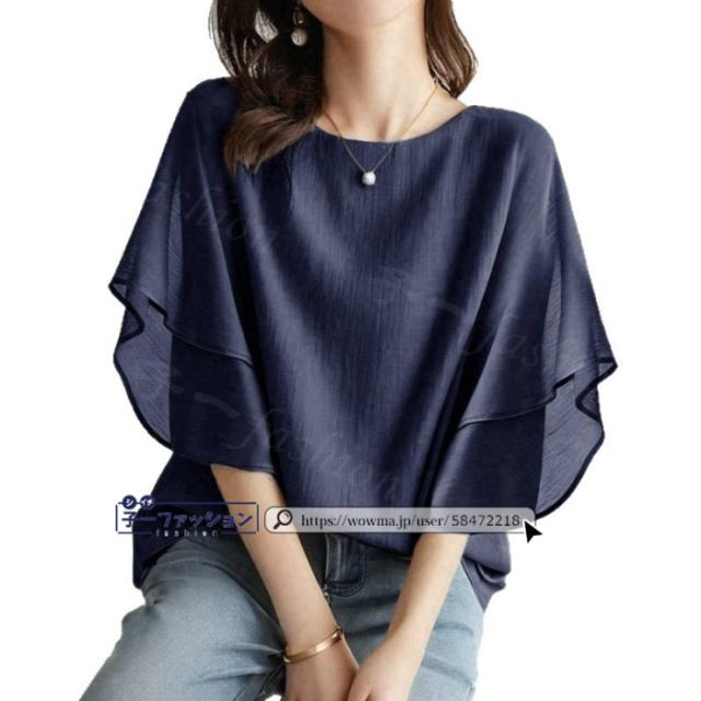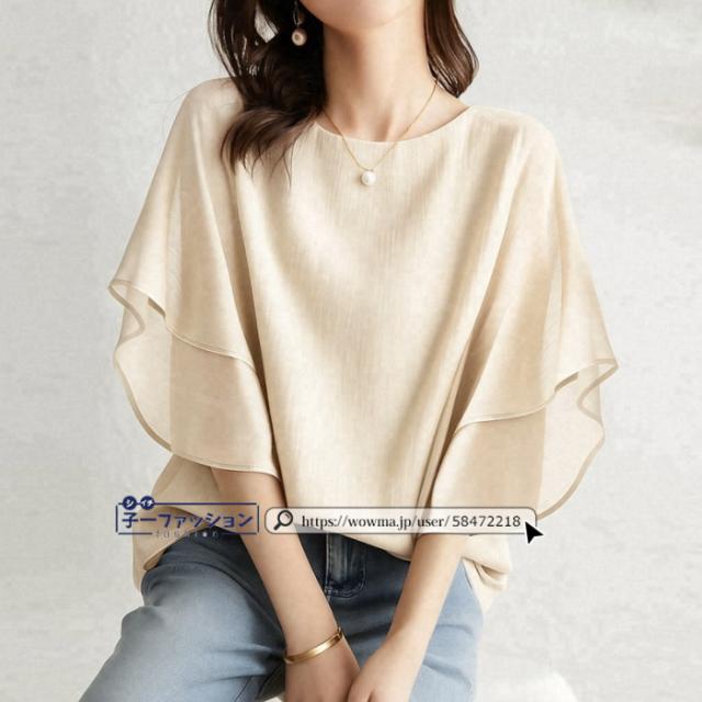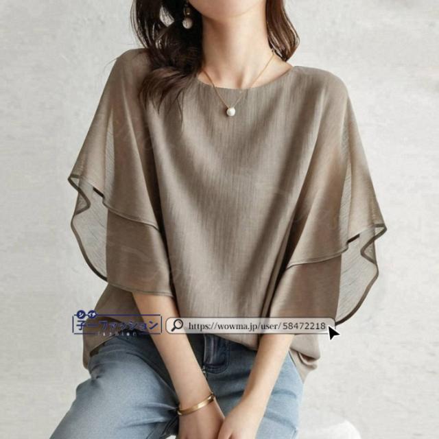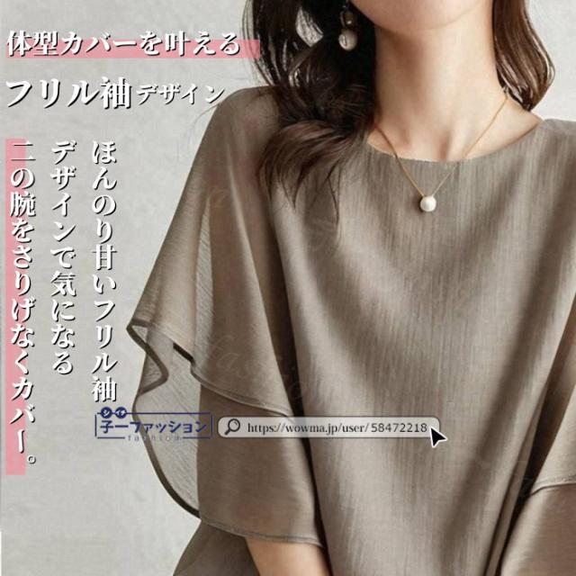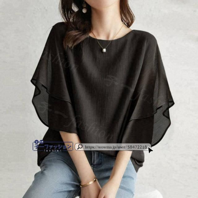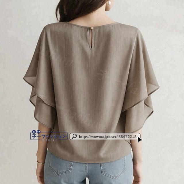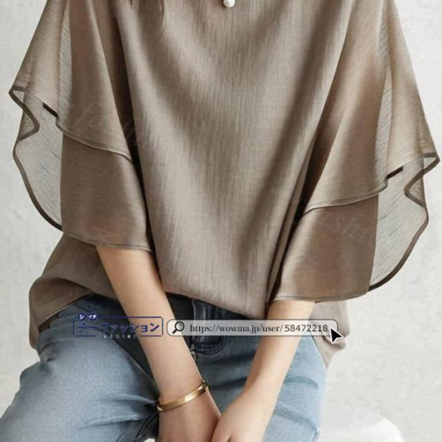 ブラウス シフォンブラウス フリル袖ブラウス フレアスリーブ 二の腕カバー 新作 レディース 春 夏 秋 トップス ゆったり 5分袖 涼しい オフィス 女の子 ワンサイズ オフィス 日常使い 食事会 デート 気軽 バレンタイン