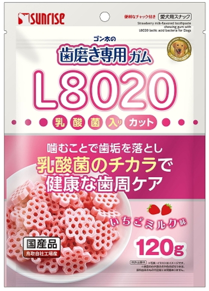 サンライズ ゴン太の歯磨き専用ガム L8020乳酸菌入り カット いちごミルク味 低脂肪 120gx48個(ケース販売)