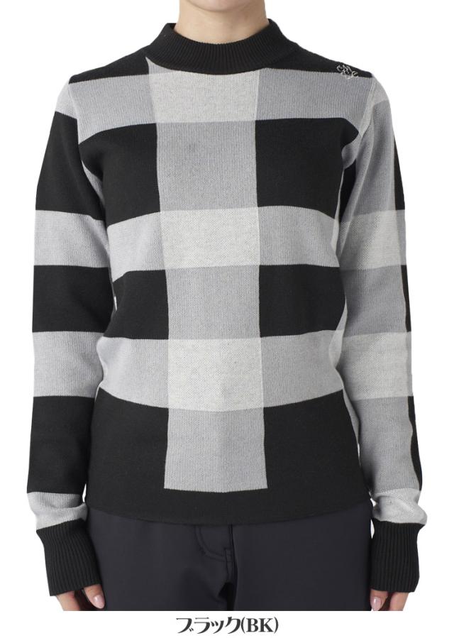 マリクレール チェック柄 モックネック ニットセーター ゴルフウェア レディース 2025年秋冬モデル M-3L 735-751